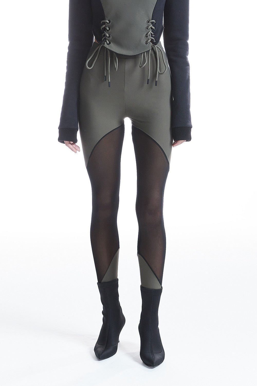 Transparent Detailed Asymmetric Cut Elastic Leg Leggings