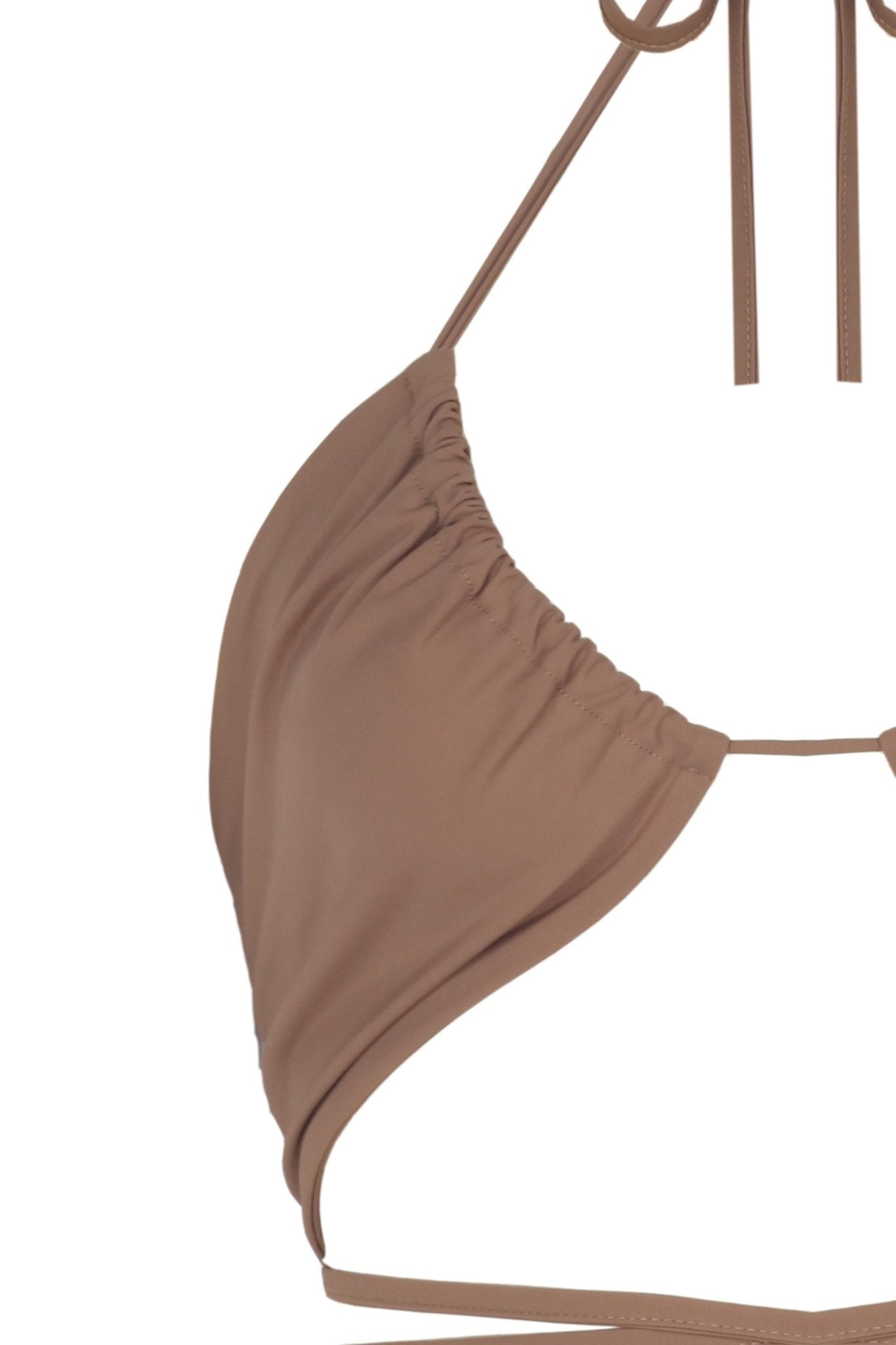 This bustier offers a sexy and striking silhouette, wrapping the body with its neck and waist tie details to create a feminine look. It can easily transition from the beach to evening elegance.