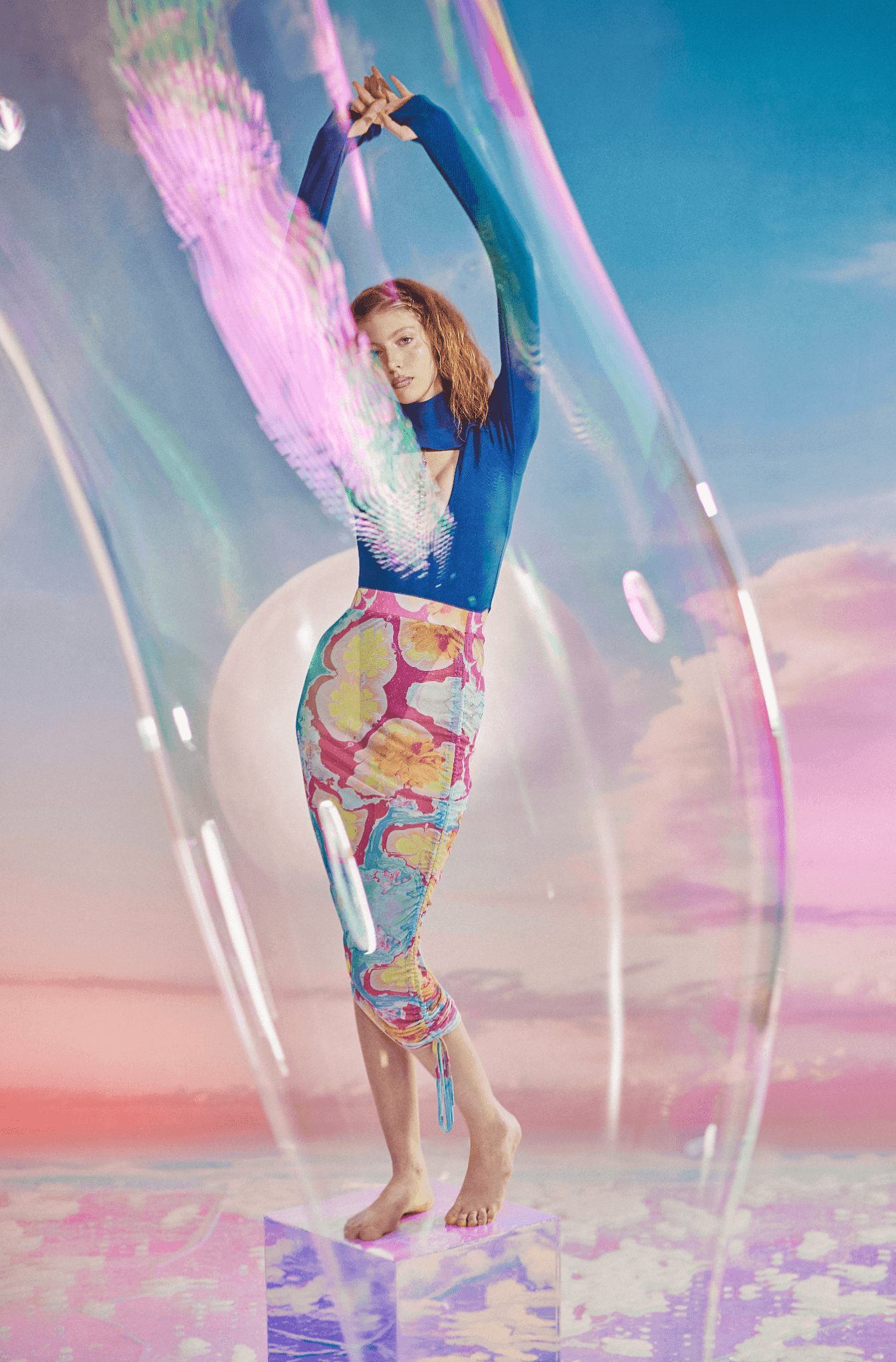 Feminine and modern. With its lightweight tulle fabric, this midi skirt offers a delicate texture and fits perfectly with its ruching details. You can complete the look with a crop top and sandals for a bohemian vibe.
