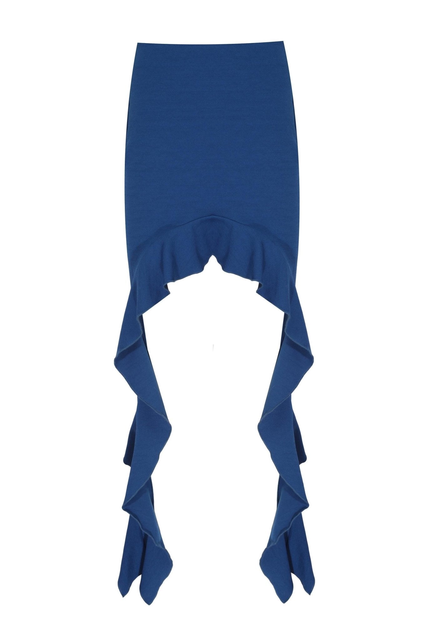 This mini skirt offers a dramatic and modern silhouette, providing a striking look with its asymmetrical cut and ruffled details. The high-waisted design elegantly accentuates the body's curves. It's a perfect choice for special events or city chic!